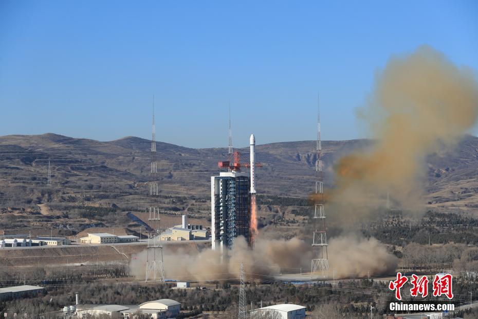 北京时间1月17日10时35分,中国在太原卫星发射中心用长征二号丁运载火箭,成功将试验十三号卫星发射升空,卫星顺利进入预定轨道,发射任务获得圆满成功。此次任务是长征系列运载火箭的第406次飞行。中新社发 许春雷 摄