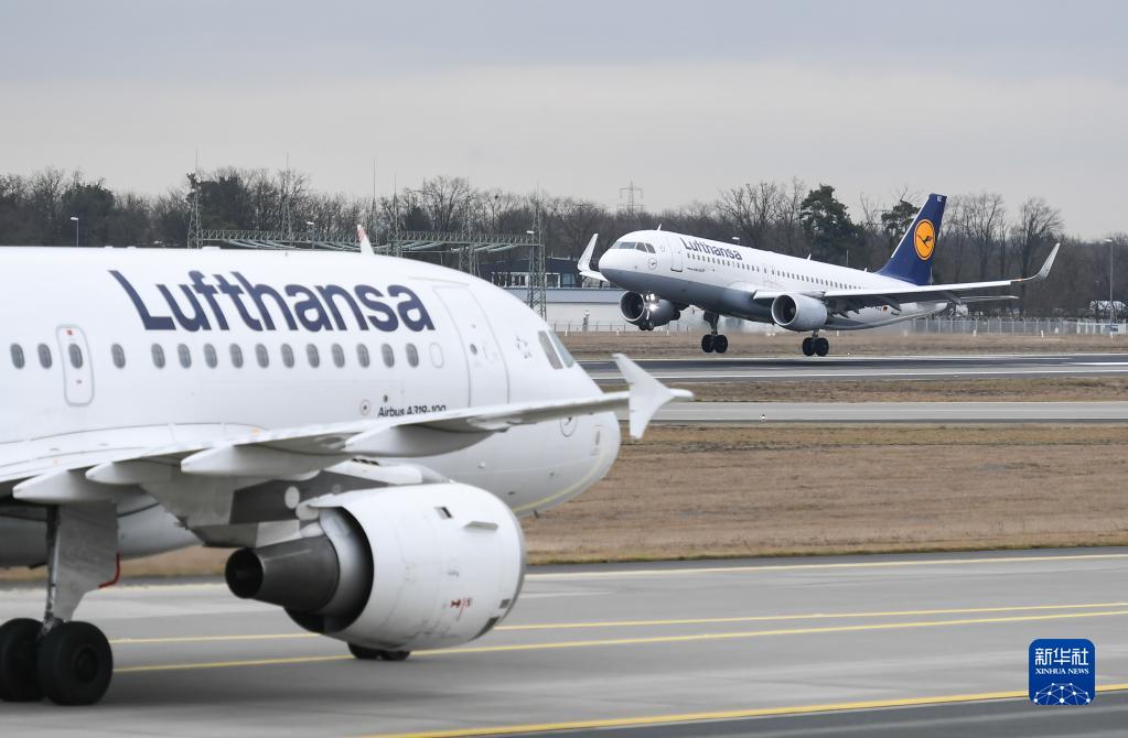1月17日,两架汉莎航空公司的飞机抵达德国法兰克福机场。新华社记者 逯阳 摄