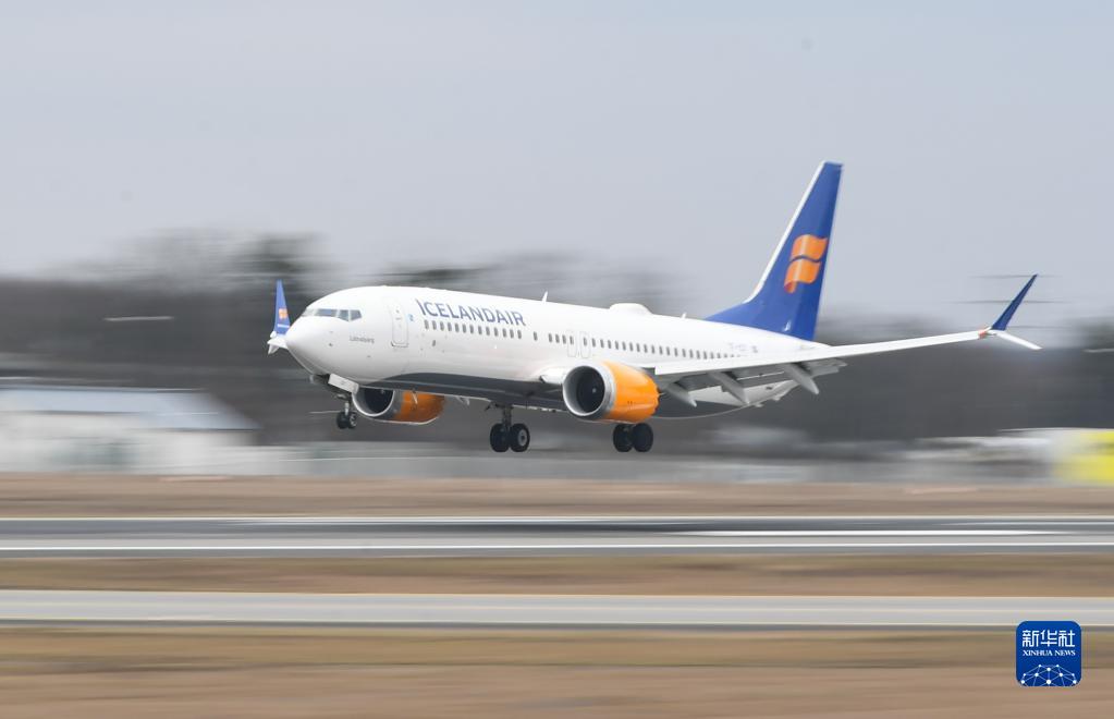 1月17日,一架冰岛航空公司的飞机抵达德国法兰克福机场。德国法兰克福机场集团17日发布的数据显示,2021年法兰克福机场旅客运输量比2020年增长32.2%至2480万人次,但仍比新冠疫情暴发前的2019年低64.8%。新华社记者 逯阳 摄
