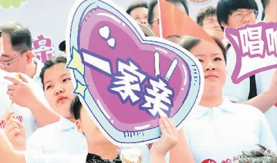 2021年6月12日,苏州市海峡两岸婚姻家庭举办的活动中,一位小朋友在唱毕《我们都是一家人》后高举“一家亲”的牌子。华雪根摄(人民视觉)