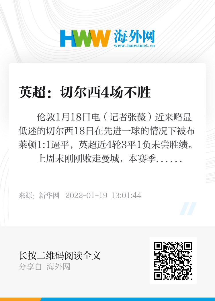 新华社伦敦1月18日电(记者张薇)近来略显低迷的切尔西18日在先进一球的情况下被布莱顿1:1逼平,英超近4轮3平1负未尝胜绩。