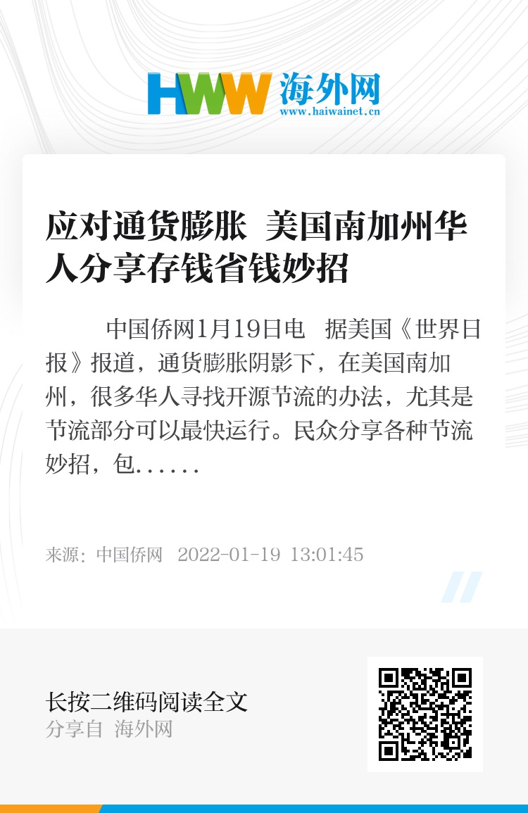 中国侨网1月19日电 据美国《世界日报》报道,通货膨胀阴影下,在美国南加州,很多华人寻找开源节流的办法,尤其是节流部分可以最快运行。民众分享各种节流妙招,包括吃饱肚子去超市、冰箱清空法则、存满退休金账户和付房贷等存钱省钱法。