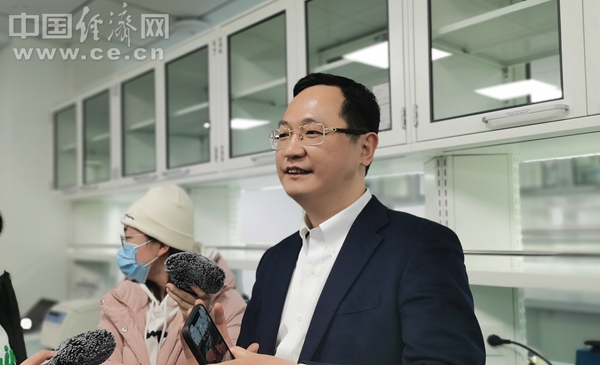 清华大学医学院生物医学工程系研究员刘鹏介绍生物气溶胶新冠病毒核酸监测系统。中国经济网记者马常艳摄