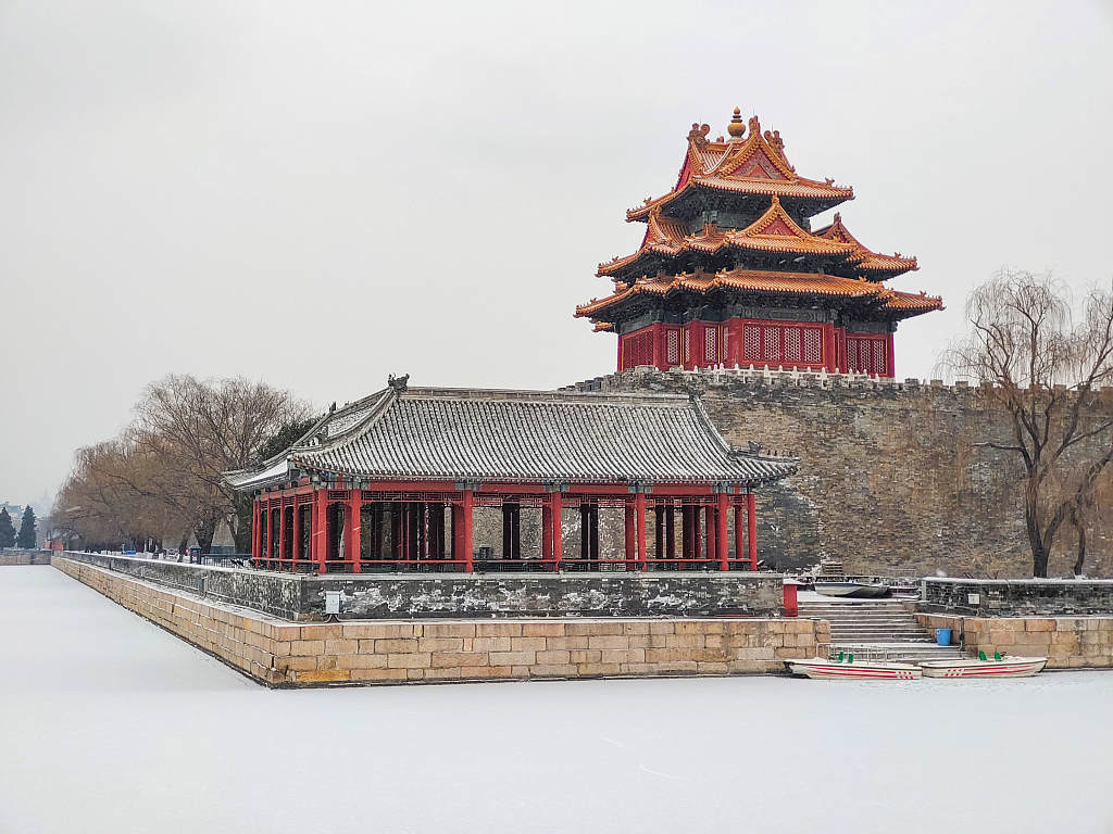 1月20日,北京,大寒节气,故宫角楼雪景。图片来源:视觉中国