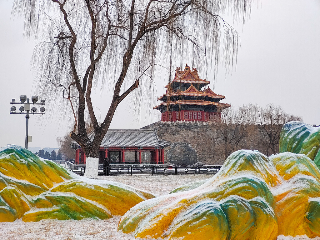 1月20日,北京,大寒节气,故宫角楼雪景。图片来源:视觉中国