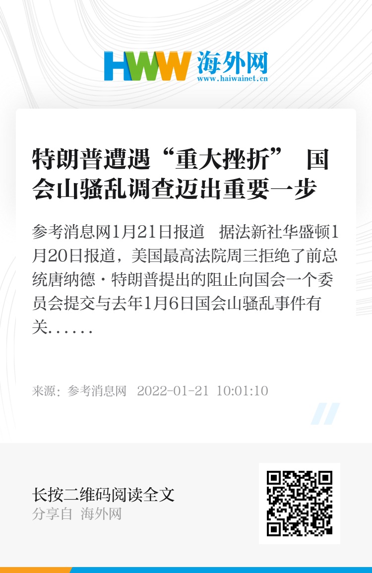 报道称,特朗普以行政特权为由,试图阻止将国家档案馆保存的档案交给调查国会山骚乱事件的委员会。被控煽动袭击国会事件的特朗普要求美国最高法院延缓一个联邦上诉法院的裁决生效——后者拒绝了他提出的对文件保密的要求。