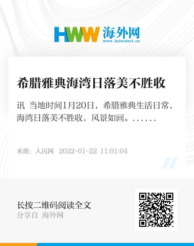 人民网讯 当地时间1月20日,希腊雅典生活日常,海湾日落美不胜收,风景如画。