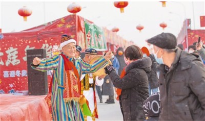 新疆维吾尔自治区昌吉回族自治州吉木萨尔县冰雪冬游季暨第四届北庭年货节上,游客在欣赏美景、购买年货的同时,体验纯正的乡村年味。