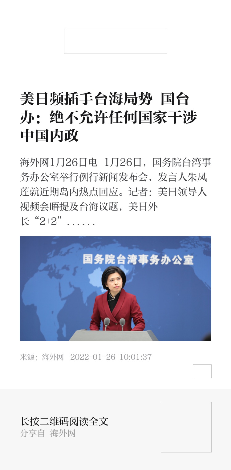 海外网1月26日电 1月26日,国务院台湾事务办公室举行例行新闻发布会,发言人朱凤莲就近期岛内热点回应。