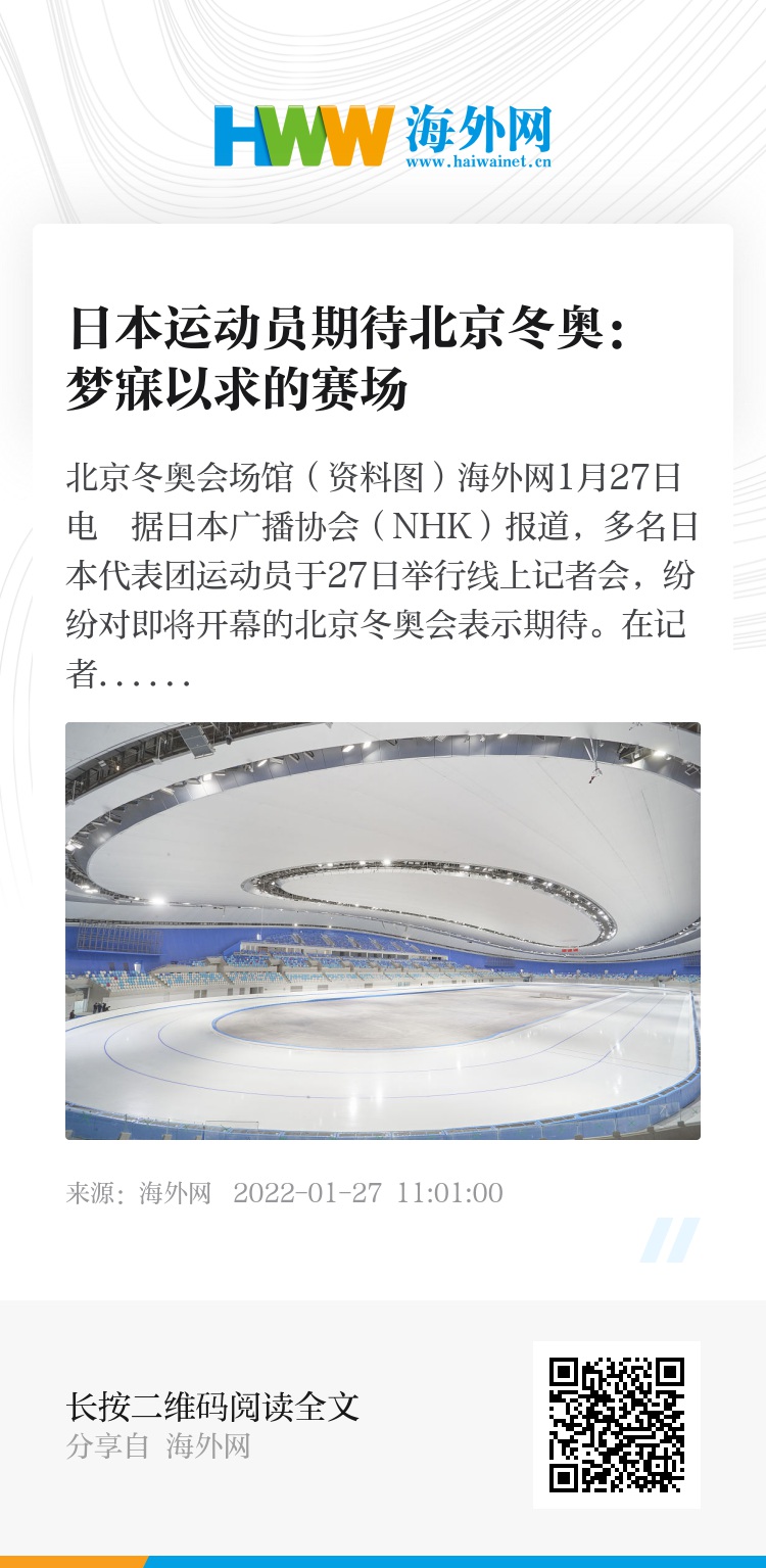 海外网1月27日电 据日本广播协会(NHK)报道,多名日本代表团运动员于27日举行线上记者会,纷纷对即将开幕的北京冬奥会表示期待。