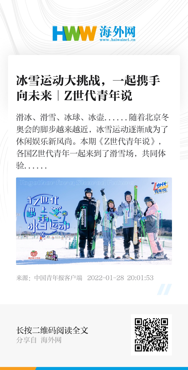 本期《Z世代青年说》,各国Z世代青年一起来到了滑雪场,共同体验滑雪运动。