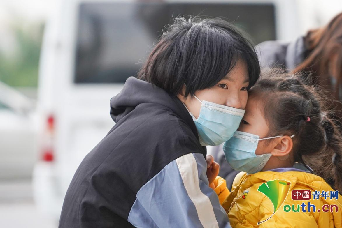 2022年1月18日,厦门北站出站口前,母女团聚相拥。 张海根 摄