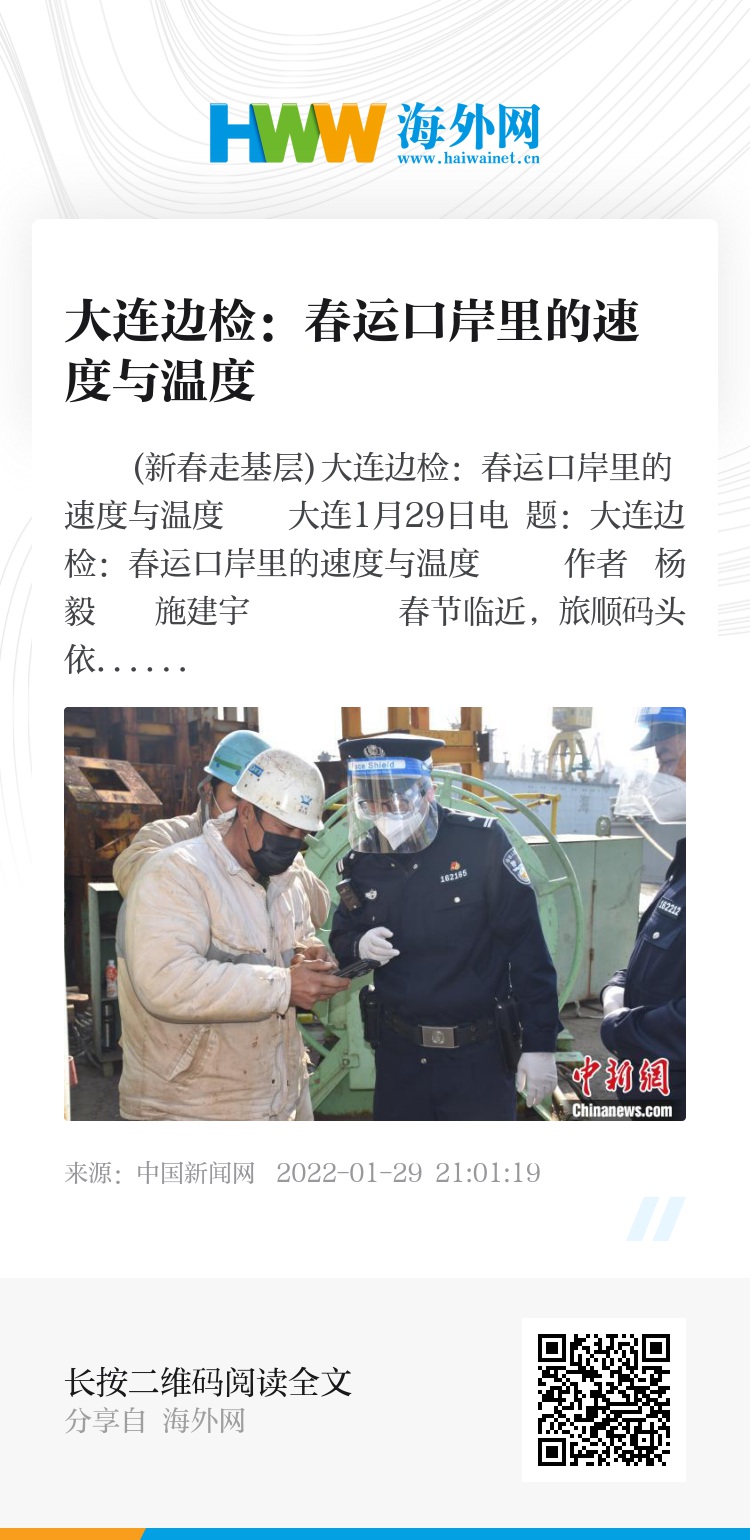 中新网大连1月29日电 题:大连边检:春运口岸里的速度与温度