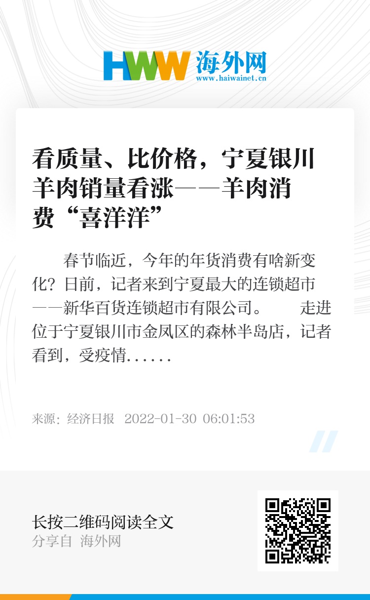 记者在该超市看到,市民王大伟购买了30斤羊肉,其中20斤快递给在南方就地过年的儿子一家。“宁夏的羊肉好吃,孩子惦记着。”王大伟说。