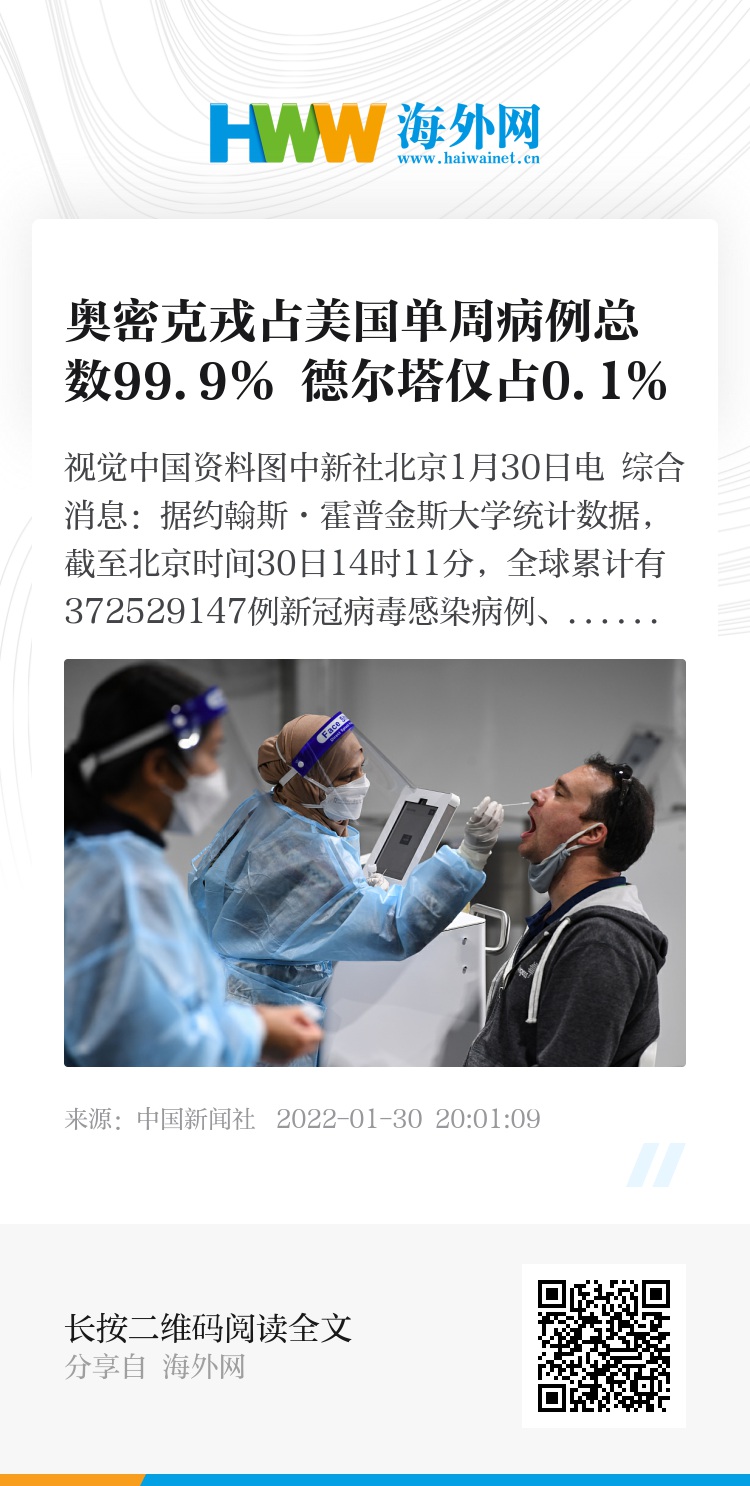 美洲:美疾控中心称奥密克戎感染病例占单周新冠病例总数的99.9%