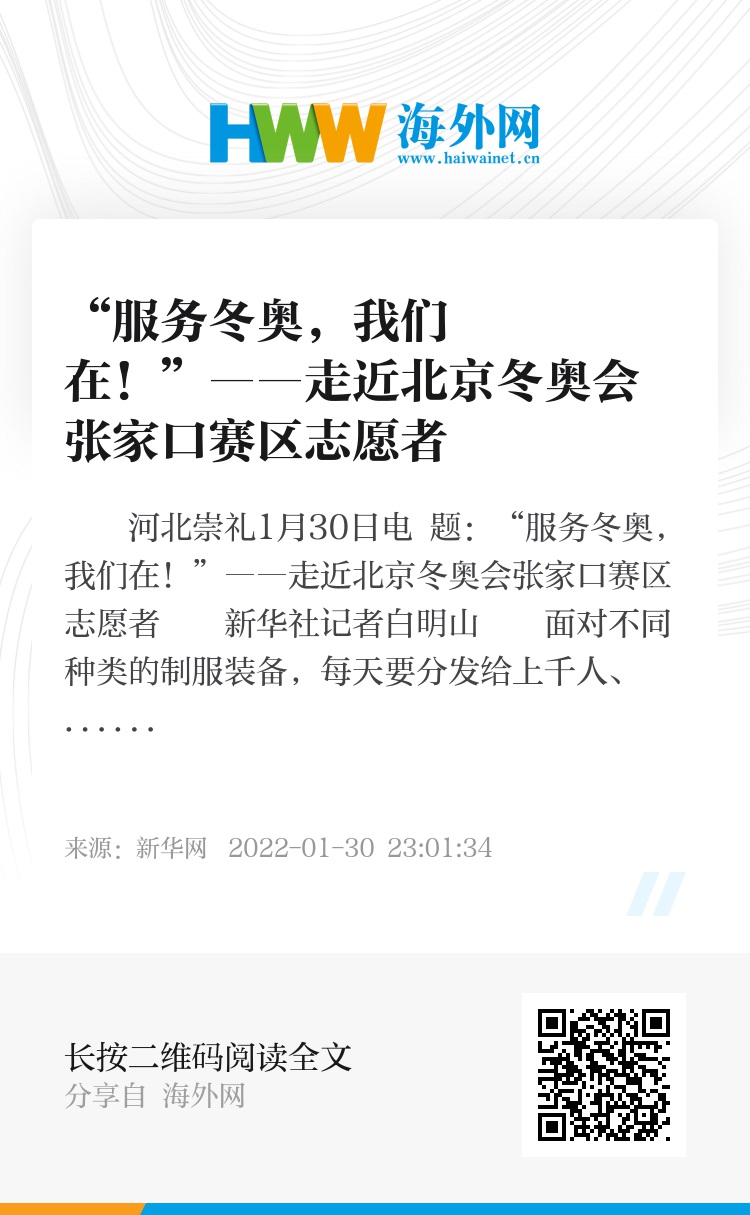 新华社河北崇礼1月30日电 题:“服务冬奥,我们在!”――走近北京冬奥会张家口赛区志愿者