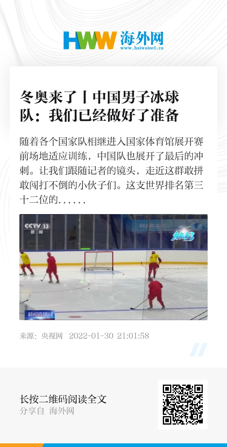 中国男子冰球队队长 叶劲光:对于我们来说这的确是个很大的挑战,但是我们已经做好了准备。过去的一段时间里,我们非常努力地训练就为了奥运赛场的这一刻,而且我们互相之间非常熟悉且默契,这对于冰球队来说是至关重要的,这也是我们的优势。我们不会放弃任何一丝胜利的希望。