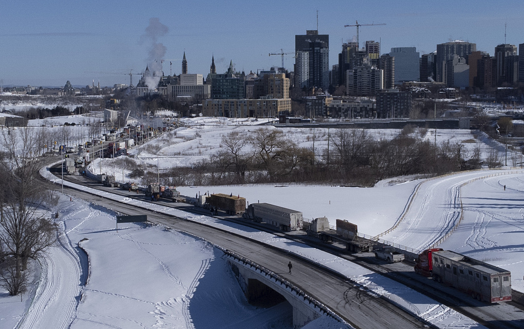当地时间2022年1月30日,加拿大数千卡车司机持续抗议疫苗强制令。29日,渥太华当地爆发多达数千人的抗议活动,反对政府的新冠限制措施。消息人士称,出于安全考虑,加拿大总理特鲁多和其家人已从家中被转移到了一个秘密地点。图片来源:人民视觉