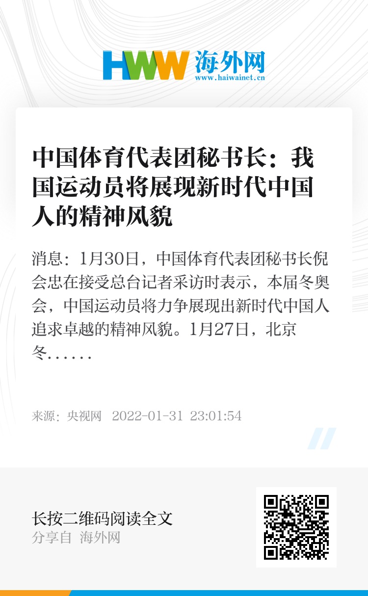北京冬奥会中国体育代表团秘书长 倪会忠:我们是东道主的代表团,我们还是要和各国的运动员、各国的官员充分交流,让他们感觉到来中国来北京来对啦,和中国代表团相处的每一天都是开心快乐的。我觉得这也是我们作为新时代的中国人应有的这种主人好客热情,特别是我们中国春节,所以中国代表团也要当好主人。