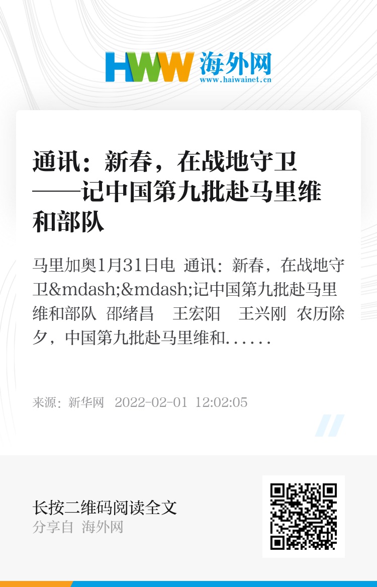 新华社马里加奥1月31日电 通讯:新春,在战地守卫——记中国第九批赴马里维和部队