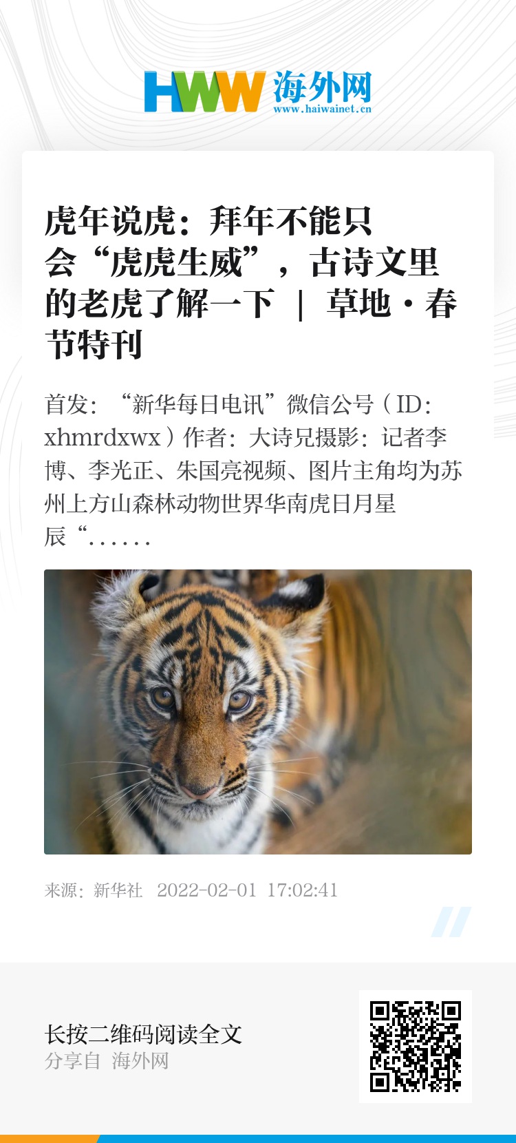 在所有描绘老虎的诗歌中,这是最喜庆、最大气的一首,非常符合迎接虎年的氛围。作者储光羲是盛唐诗人,他大大表扬了一番老虎,简直把它写成了“仁义”的化身: