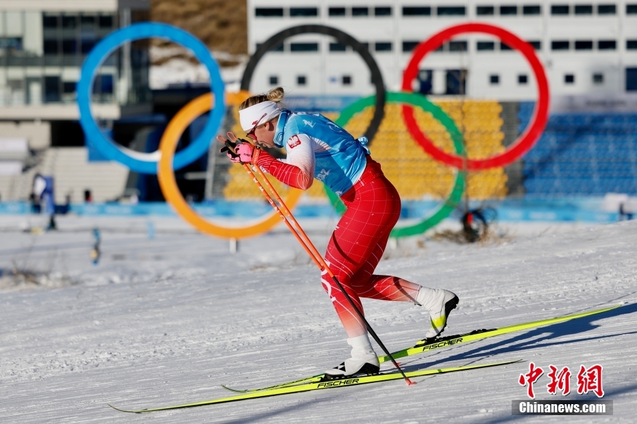 2月1日,运动员在张家口赛区的国家越野滑雪中心进行训练,备战北京冬奥会。 中新社记者 富田 摄