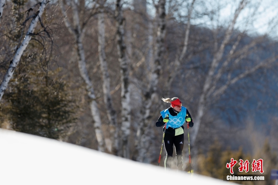 2月1日,运动员在张家口赛区的国家越野滑雪中心进行训练,备战北京冬奥会。 中新社记者 富田 摄