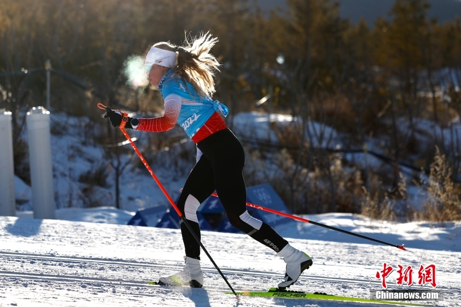 2月1日,运动员在张家口赛区的国家越野滑雪中心进行训练,备战北京冬奥会。 中新社记者 富田 摄