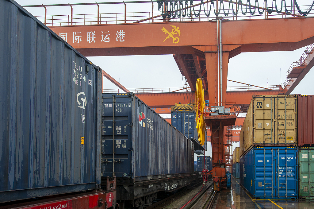 据铁路部门信息,当天,浙江省铁路金华南站除开行中老铁路国际货运列车外,还有五趟中欧班列分别经霍尔果斯、满洲里、阿拉山口和二连浩特等口岸出境,分别发往中亚五国、白俄罗斯明斯克、法国杜尔日和俄罗斯莫斯科,驰骋在欧亚大陆“一带一路”物流大通道上。图片来源:人民视觉