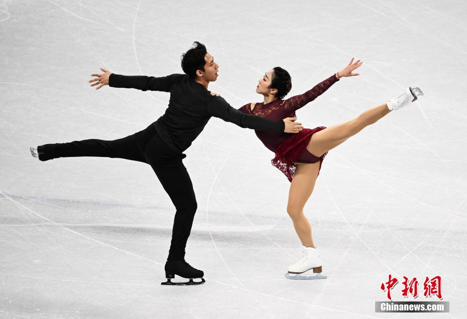 ​2月2日,参加北京冬奥会花样滑冰比赛的双人滑选手在首都体育馆进行赛前训练。图为中国选手隋文静(右)与韩聪在训练中。 中新社记者 毛建军 摄