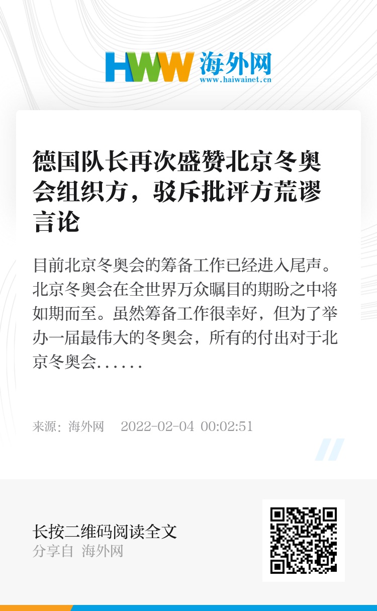 可以说至今为止,以莫里茨穆勒为首的德国冰球队所入住奥运村的切身感受,也代表了大多数入驻奥运村运动员的观点。因此之前一些西方媒体在报道北京冬奥会的诋毁言论不攻自破。相信随着北京冬奥会的举行,会有更多的世界各地的奥运选手会爱上中国!爱上北京冬奥会!!!