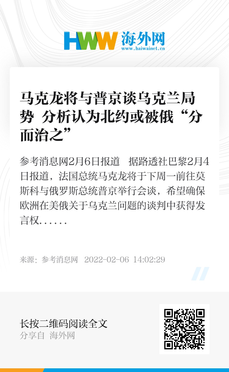 一名法国驻该地区前大使说:“普京不需要向马克龙提供任何条件,因为对他来说,谈判的对象是美国。”他还说,普京可能会利用他与马克龙的会谈对北约成员国“分而治之”。