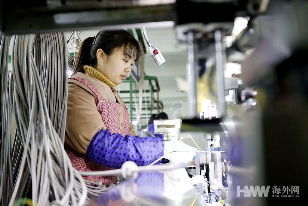 2022年2月7日,在江西省吉安市峡江县坤诚电线电缆有限公司生产车间,工人在忙着生产。(供图:视觉中国)