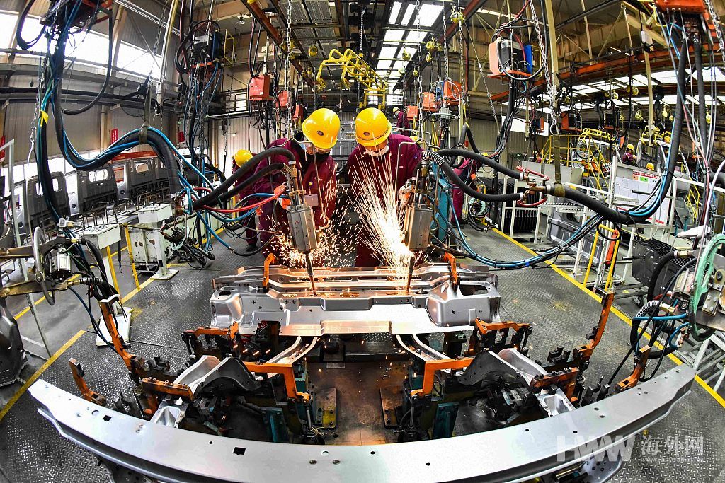 2022年2月7日,山东潍坊,工人在江淮汽车山东分公司冲焊车间内焊装生产。(供图:视觉中国)