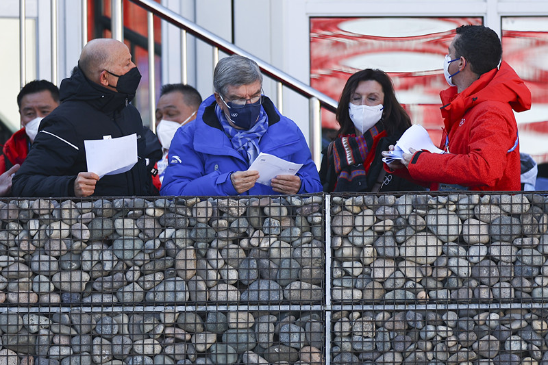 2月8日,河北张家口,2022北京冬奥会自由式滑雪女子大跳台决赛,国际奥委会主席巴赫现场观战。(图:东方IC)