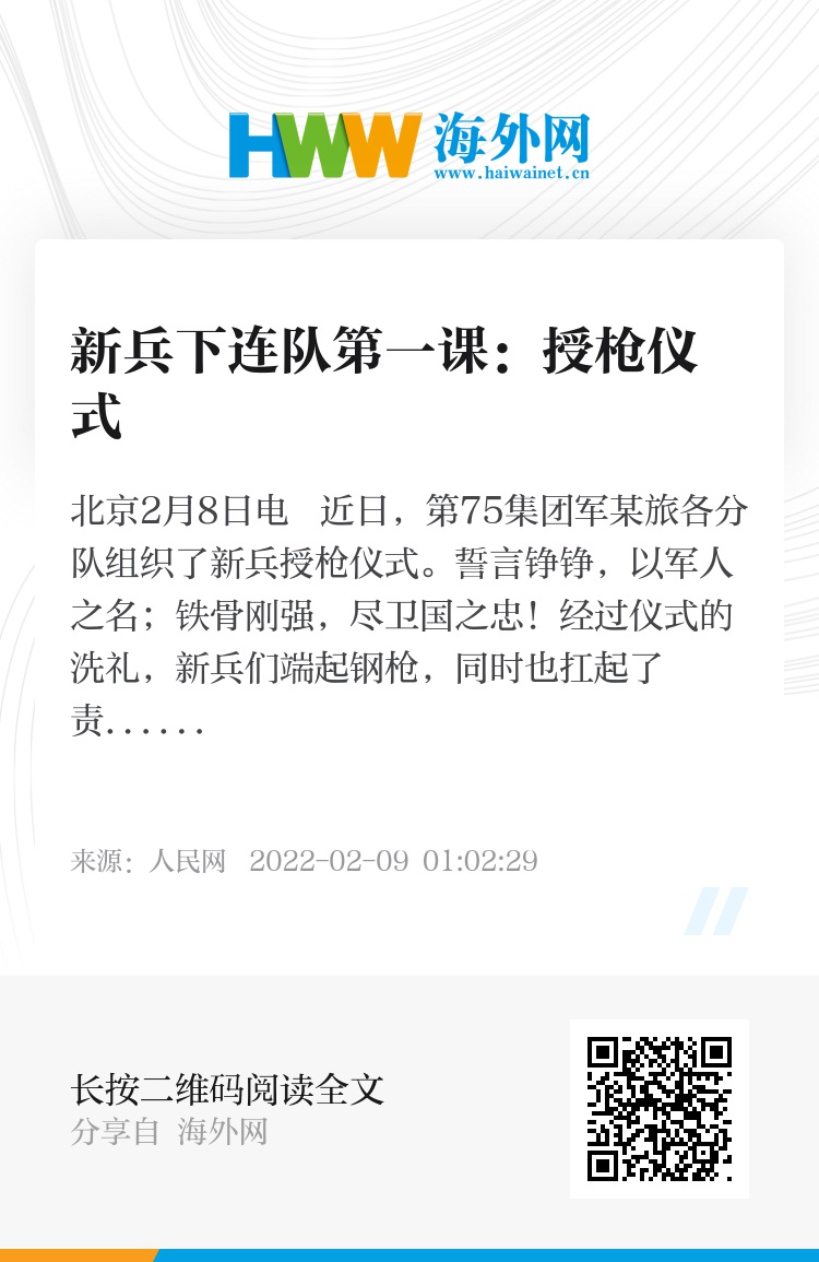 人民网北京2月8日电 近日,第75集团军某旅各分队组织了新兵授枪仪式。誓言铮铮,以军人之名;铁骨刚强,尽卫国之忠!经过仪式的洗礼,新兵们端起钢枪,同时也扛起了责任。新的一年已经开始,新的征程已经启航,他们必将披荆斩棘、奋勇前进,书写强军兴军新篇章。