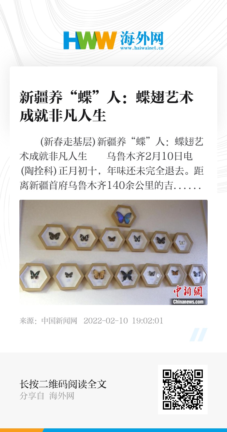 (新春走基层)新疆养“蝶”人:蝶翅艺术成就非凡人生