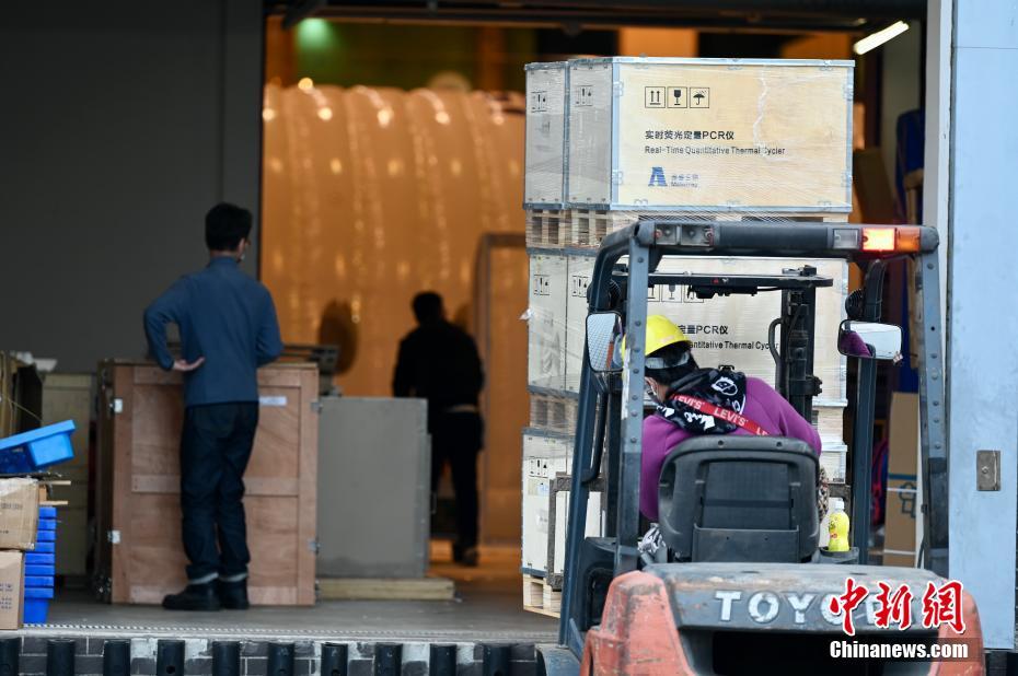 2月9日,设于香港马鞍山体育馆的大规模核酸检测临时气膜实验室(又称:“火眼实验室”)正在紧锣密鼓地准备中,预计本月中投入使用。香港特区政府早前宣布于马鞍山体育馆重设“火眼实验室”,以大幅增加每日核酸检测量。中新社记者 李志华 摄