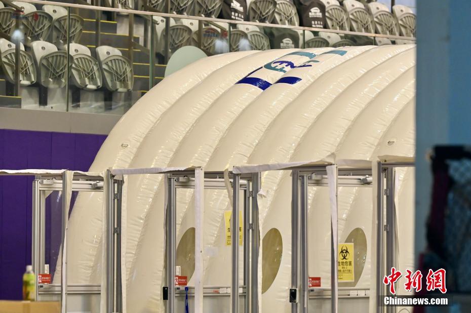 2月9日,设于香港马鞍山体育馆的大规模核酸检测临时气膜实验室(又称:“火眼实验室”)正在紧锣密鼓地准备中,预计本月中投入使用。香港特区政府早前宣布于马鞍山体育馆重设“火眼实验室”,以大幅增加每日核酸检测量。中新社记者 李志华 摄
