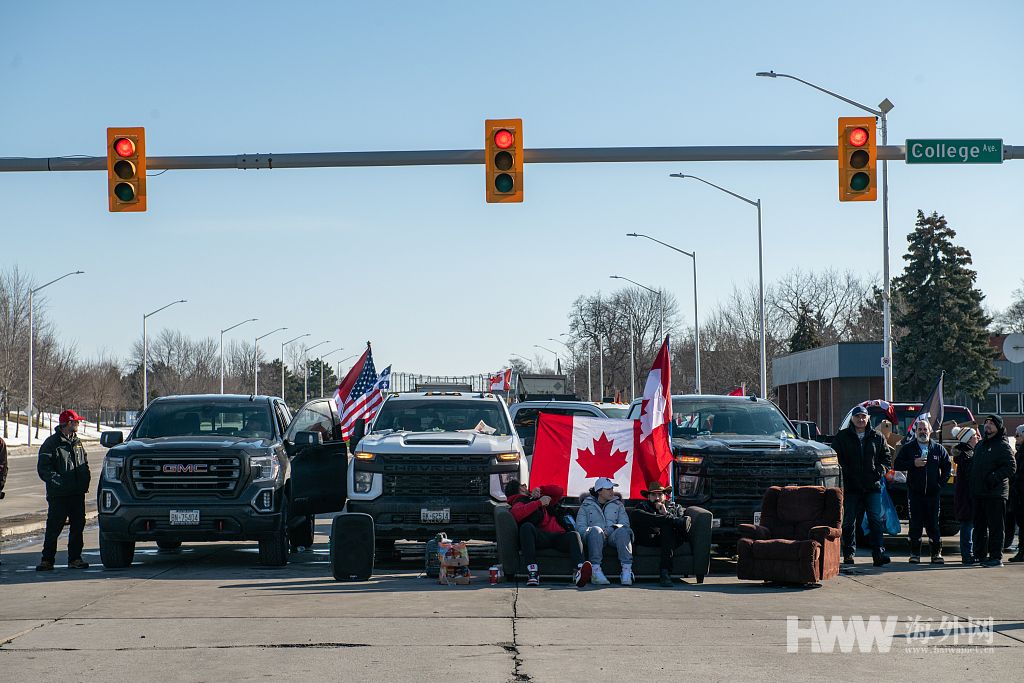 当地时间2022年2月9日,加拿大抗议活动持续,数百辆卡车仍然占据交通要道,严重影响了当地居民生活。近来,此类抗议活动在加拿大全国多地爆发,并且逐渐从单纯反对防疫措施演变为对特鲁多政府的抨击。(图:视觉中国)