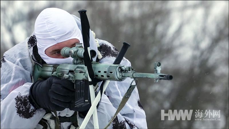当地时间2022年2月9日,俄罗斯坦波夫州,俄罗斯西部军区的狙击手进行战术演习。(图:澎湃影像)