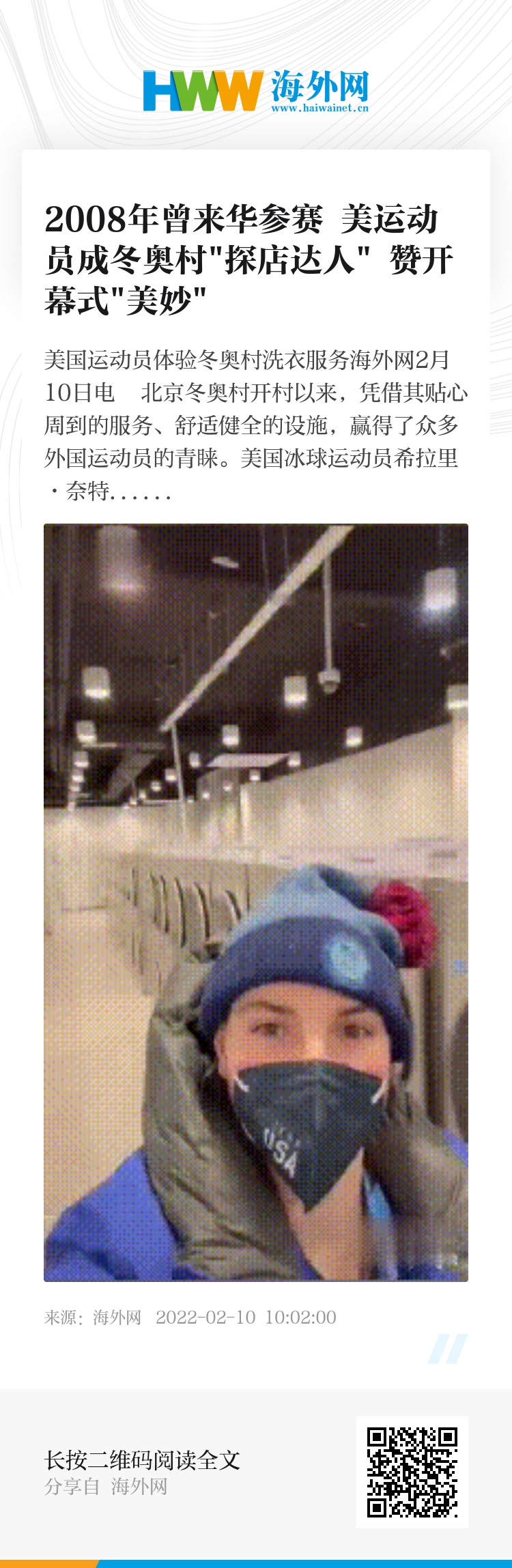 海外网2月10日电 北京冬奥村开村以来,凭借其贴心周到的服务、舒适健全的设施,赢得了众多外国运动员的青睐。美国冰球运动员希拉里·奈特就是其中一位,2月9日,她在海外社交平台上,分享了自己在志愿者热心引导下,体验冬奥村洗衣服务的经历,她频频竖起大拇指,还留言致谢志愿者,视频获得超过13万网友点赞。