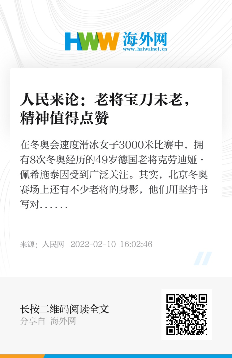 让体育贯穿生命,为了热爱而不断拼搏。老将在冬奥赛场发光发热,用行动激励着年轻人接续前行。冬奥老将值得我们点赞! (邱慧伶)