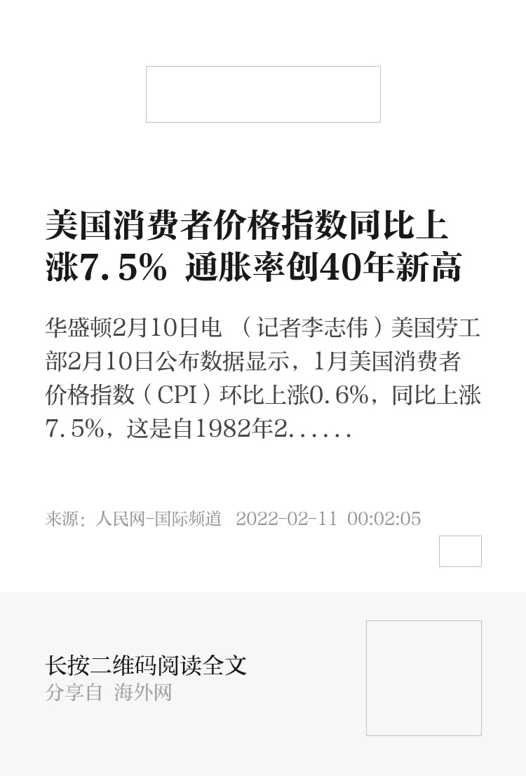 32339043,.美国消费者价格指数同比上涨7.5% 通胀率创40年新高,.2022-02-11 00:00:05,.3139,.海闻