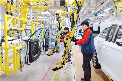 二月十日,吉利汽车浙江湖州长兴基地生产车间内一片繁忙景象,各生产线全面复工复产。谭云俸摄(人民视觉)