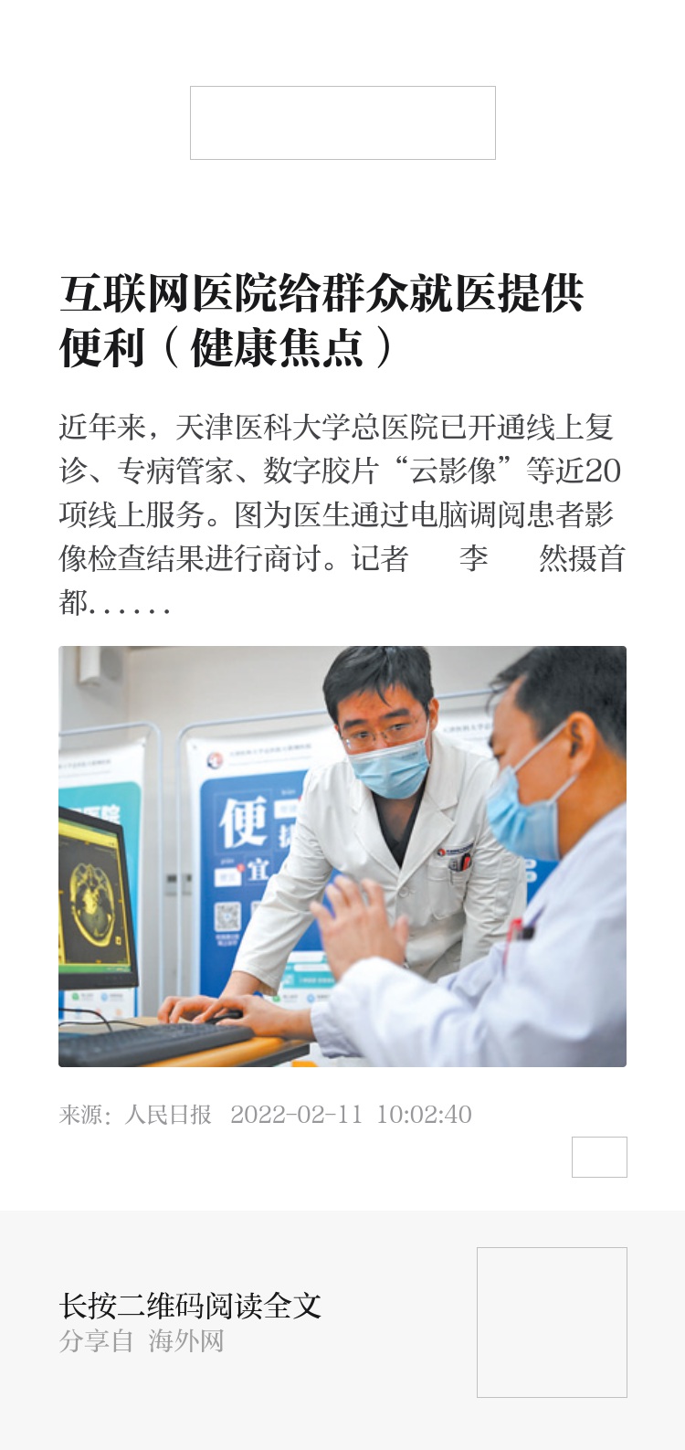 前不久,国务院印发《“十四五”数字经济发展规划》,提出加快互联网医院发展,推广健康咨询、在线问诊、远程会诊等互联网医疗服务。