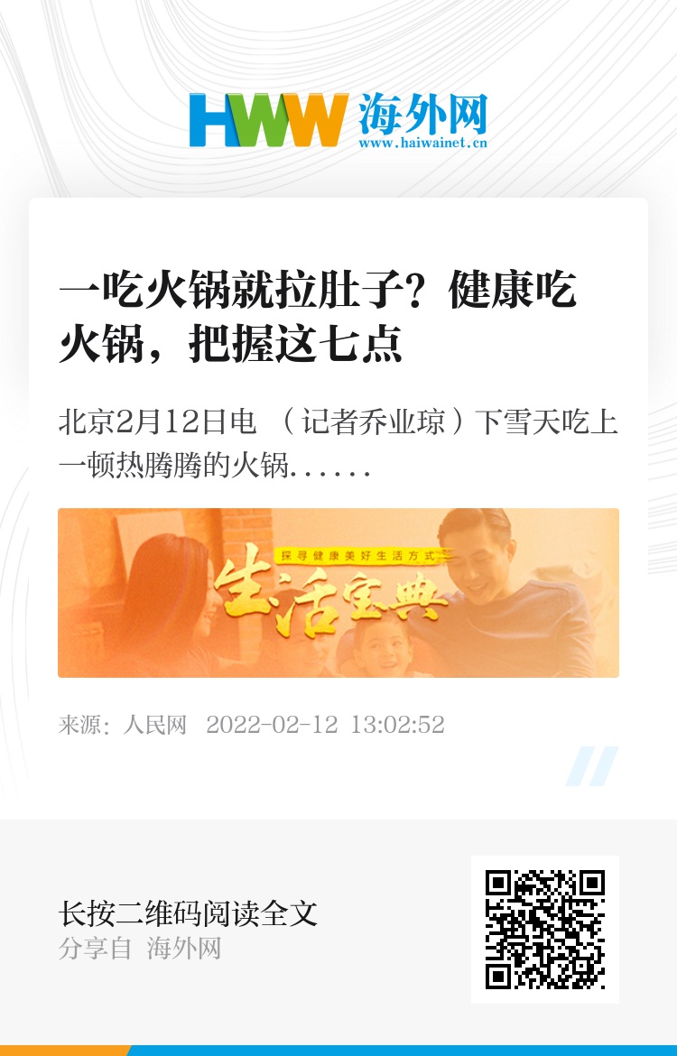 人民网北京2月12日电 (记者乔业琼)下雪天吃上一顿热腾腾的火锅,是再幸福不过的事情了。但吃火锅也是很讲究的,如果不能掌握正确吃火锅的方法,很可能出现拉肚子的情况。