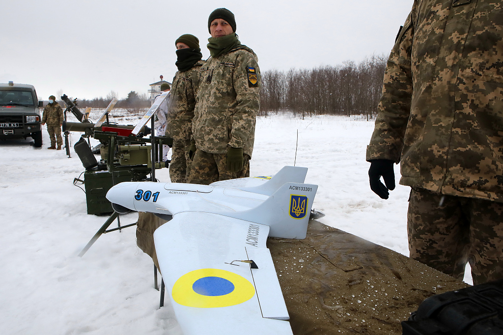 当地时间2022年2月10日,乌克兰哈尔科夫地区,乌克兰武装部队第92旅在东北部哈尔科夫地区举行演习。2月8日,乌克兰国防部长列兹尼科夫表示,乌克兰武装部队将于2月10日至20日在多地举行大规模演习。图源:人民视觉