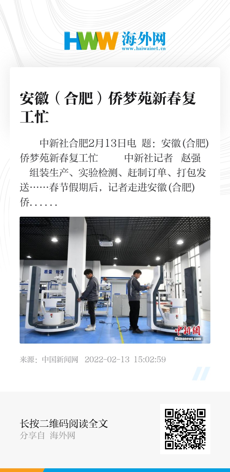 组装生产、实验检测、赶制订单、打包发送……春节假期后,记者走进安徽(合肥)侨梦苑,入驻于此的侨资企业正迎来节后复工高潮。