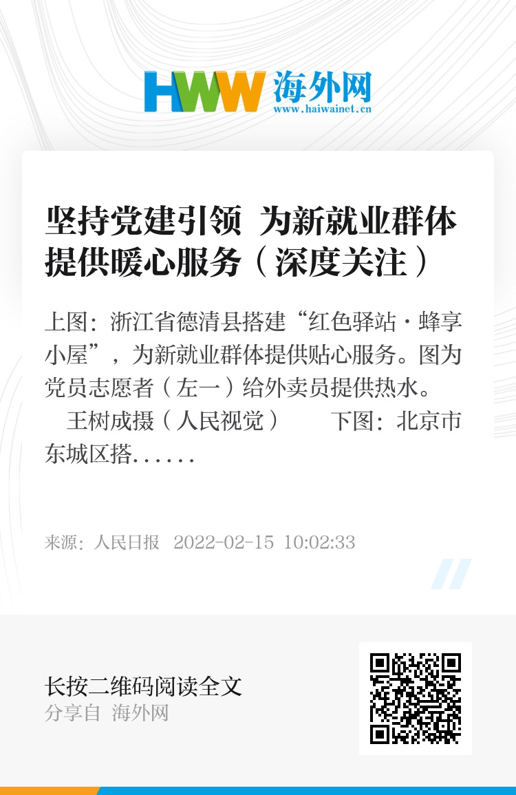 目前,青田县共有2000余名外卖员、快递员、网络电商新业态从业者,这群人中有本地党员10余人、流动党员20余人。青田县委组织部副部长毛平平介绍,为凝聚新就业群体崇德向善正能量,青田县推出“青蜂侠”快递物流行业党建联盟、侨乡先锋驿站、“爱心工坊”联盟等载体平台,组织开展社区与快递物流站结对共建等活动,打造共建共享、关心关爱、互通互融的党建新矩阵。(记者 张 洋 王昊男 吕绍刚 窦瀚洋)